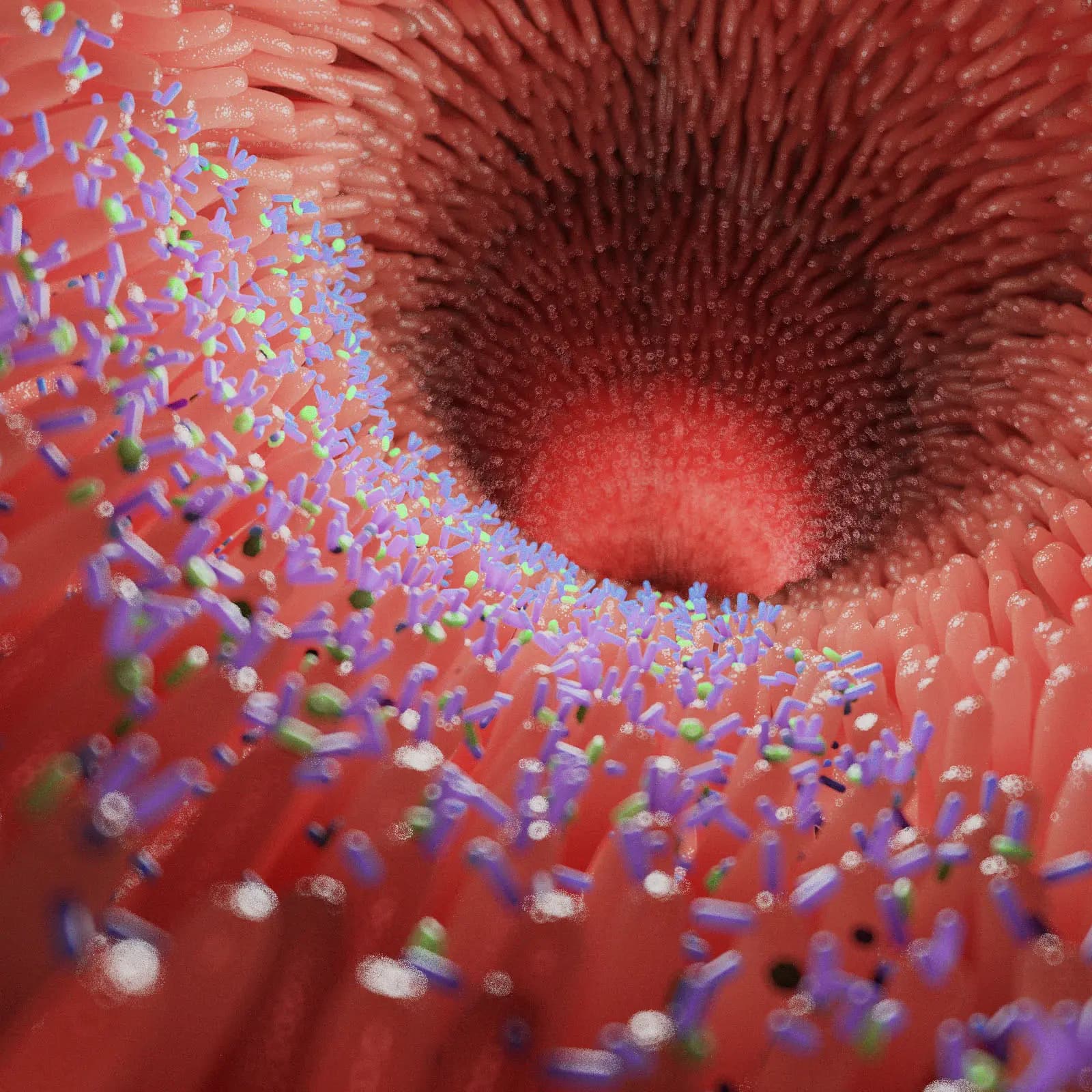 3d Rendered Medical Illustration Of The Microbiota And Microvilli Of The Fetal Intestine